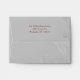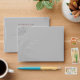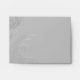 Lovely wedding thank you card envelope done in light grey, with lovely silvery grey flourishes, on the outside and inside of the envelope. A chic burgundy covers the inside of the envelope. Burgundy text return address, on the back flap, is fully customizable and ready to personalize with your information.