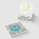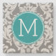 Chic Grey and Teal Damask Pattern Custom Monogram Stone Coaster