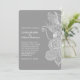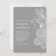 Stylish wedding invitation done in grey, with line graphics of a large white floral mandala, on the right side. The white text is centred on the left side and is ready to personalize for your special day. Matching products are available.