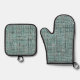 Chic Grey Seafoam Blue Green Boucle Woven Pattern Oven Mitt & Pot Holder Set