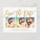 This elegant and modern 3-photo save the date postcard features a beautiful brush-script lettering in gold. Visit the shop to see the rest of the collection from the Chic Typography Gold suite.