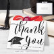 Custom graduation thank-you note cards that can be personalized with the graduate's name and class year on the front along with a full-bleed over-sized THANK YOU title in a chic handwritten script font with a black and silver mortarboard. The inside offers the option to pre-print your thank-you message or opt to delete the sample text to leave the inside blank for handwriting notes of appreciation. Contact the designer via Zazzle Chat or makeitaboutyoustore@gmail.com if you'd like this design modified, on another product or would like coordinating items.