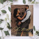 A stylish minimalist digital gold foil wedding save the date announcement featuring your favourite portrait photo overlaid with "save the date" and your wedding details in real gold foil.