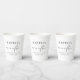 Chic paper cups for your wedding reception, engagement parties, rehearsal dinner, couples showers and other wedding celebrations that feature "Happily Ever After" in elegant typography and a stylish modern script, your first names and wedding date.
