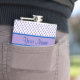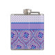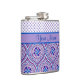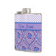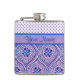 A chic Hip Flask to personalize, with a mix'n'match pattern of traditional ogee shapes in Aubergine, Blue and White, teamed with matching Pale Mauve polka dots on a white background. Part of the Posh & Painterly 'Purple Pop' collection.