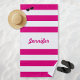 Chic Hot Pink and White Stripes Personalized Beach Towel