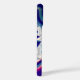 Elegant and eyecatching phone case features a vibrant image of agate geode slices in bright shades of indigo, blue, and purple on a black background. Personalize with your initials or monogram tucked into the design in classic white lettering.