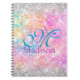 Make back to school fun with this Cute personalised Notebook. It is designed with elegant girly iridescent unicorn silver faux glitter .