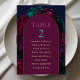 Chic jewel tones flowers wedding table numbers seating chart. Add a touch of elegance to your wedding tables with this chic jewel-toned floral table number sign. Featuring a stunning blend of rich burgundy, navy, fuchsia, magenta, turquoise, and purple flowers, this modern table number is perfect for a bold and sophisticated wedding theme. Printed on high-quality material, it offers both style and functionality, making it easy for guests to find their seats while enhancing your reception décor. A beautiful way to bring a vibrant, luxurious feel to your special day!