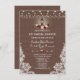 Unique card design featuring string lights, old lantern with marsala flowers bouquet on a burlap with lace corners background. Use Customize tool to add your info. See, also, my Vintage Lace Collection.