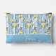 Elegant and customizable pouch featuring a vibrant blue and white striped pattern adorned with delicate yellow and white flowers, lemon accents, and personalized text. A versatile accessory perfect for organizing essentials with a stylish touch.