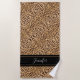 Chic Leopard Print Black Script Personalized Beach Towel