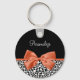Personalize by adding the name of any girly girl to this chic black and white leopard print keychain with an elegant burnt orange ribbon tied into a sophisticated bow. This stylish animal print design is a flat printed image, and does not contain actual ribbon.