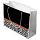 Personalize by adding the name of any girly girl to this chic black and white leopard print large size gift bag with an elegant burnt orange ribbon tied into a sophisticated bow. This stylish animal print design is a flat printed image, and does not contain actual ribbon.