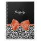 Personalize by adding the name of any girly girl to this chic black and white leopard print notebook with an elegant burnt orange ribbon tied into a sophisticated bow. This stylish animal print design is a flat printed image, and does not contain actual ribbon.