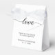The centerpiece of these chic favour boxes is the word "Love" written in a modern script font. It beautifully captures the essence of the occasion and the love shared between the couple. It says it all with a touch of sophistication and romance.