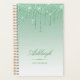 This chic planner features a sparkly green faux glitter drip border and green ombre background. Personalize it with her name in elegant script over a green diamond divider. The words "2024 Planner" or other text of your choice appear in sans serif font below.