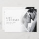 Express your heartfelt gratitude with our Chic Luxury Script Wedding Photo Thank You Card. This elegant card features a timeless black and white design, enhanced by a romantic photo capturing your special day. The handwritten typography adds a personal fellings, making it perfect for thanking your loved ones with style and sophistication. Whether used as double-sided thanks cards or trendy wedding reception table pieces, these cards exude class and modern elegance. Show your appreciation with this minimalist, yet impactful design that conveys your sincere thanks in the most beautiful way.