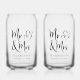 Chic mariage peut prendre un verre pour les jeunes mariés avec "Mr & Mrs" dans un grand script élégant et une illustration de deux coeurs réunis. Ajoutez le nom de la mariée et du marié et la date du mariage.