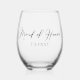 Chic Maid of Honour Customizable Black Script Stemless Wine Glass