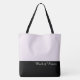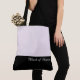 This lovely fashion forward tote bag shows the word "Maid of Honour" in white text colour over black with the upper tote bag in custom Soft Blush Orchid. Has plenty of room for personalized text. Graphics and text are on both sides of this tote bag. Black handle. Customize further or buy as shown.