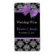Elégant étiquettes de vin mini mariage prêt pour vous à personnaliser avec vos propres informations. Modèle damassé noir et blanc, en haut et en bas du étiquette, avec un arc lavande, en haut, et une bande lavande, en bas du étiquette, avec une zone de texte noir, au milieu. Le texte est entièrement personnalisable pour répondre à vos besoins mariages. Idéal pour votre table de réception de mariage ou des vins cadeaux.