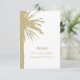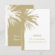 Chic mariage plage petites cartes d'enceinte verticale avec empreinte de palmier. Modèle de design tropical avec imprimé sur deux côtés. Idéal pour l'été et les mariages de destination exotique. La palette de couleurs peut être modifiée.
