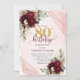 Chic Maroon White Gold Roses 80th Birthday Invites