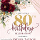 The rich jewel tones combined with delicate blush and metallic-inspired gold accents create a warm, celebratory feel, making it ideal for an 80th birthday party, elegant garden gathering, or intimate milestone celebration. Fully customizable with your details, this design allows you to add personal messages, names, and event information, ensuring each invitation feels unique and heartfelt.