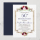 Chic Marsala Floral Navy Blue Gold 50th Birthday Invitation