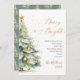 Elegant Modern Gold Calligraphy Merry and Bright Script Watercolor Christmas Tree Non Photo Christmas Cards. This festive Holiday cards features a watercolor christmas tree with decoration gold balls and confetti and a „Merry and Bright” greeting text which is written in a pretty hand lettering font in gold and white. On the reverse christmas tree pattern on dusty green background. This festive Custom Personalized Christmas Cards are a great way to remind loved ones that you're thinking of them this Winter Holiday Season.