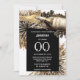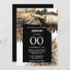 An elegant, chic and stylish golden coloured sparkling wine bottle is surrounded by gold, black and white exploding fireworks and a black inlay on which templates for yuor personalized wording appears. This design is ideal for a milestone birthday party or a business celebrating the number of years they have been in business.