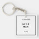 Chic and minimal French, Parisian inspired, monochrome black and white personalized best man name keychain. Customise with best man's name and wedding destination in a chic minimal sans serif font. Designed to match our Chic Minimal French Black & White Wedding Collection.