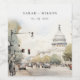 Chic Minimal Washington DC, USA Watercolor Wedding Wine Label