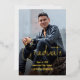 Unique and trendy full photo congratulations graduate announcement and celebration party invitation card, with a stylish yellow real gold foil and classy typography font. With room to customize or personalize with a photo, the name of the graduate, class graduation year, high school, future college or university name, and celebration party event information. Let the family, friends, and neighbors know there is a happy graduate ready to conquer the world and invite everybody to come to celebrate the happy event with you!