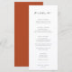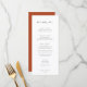Chic Minimalist, wedding menu. Feature, black typography with terracotta orange colour backing.