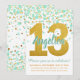 Chic Mint Gold Glitter Confetti Girl 13th Birthday Invitation