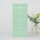 This soft mint green wedding dinner menu features chic white typography for a sweet spring outdoor ceremony. Simple and elegant script on tranquil solid pastel green menus for a garden reception.