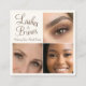 Chic Mocha Brown Cream Script 3 Photo Lashes Brows Square Business Card