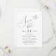 Elegant Modern Chic Black and White Wedding Save the Date. Gorgeous sophisticated designer wedding save the date with black text on white featuring striking Save the date script typography header. Personalize with your save the date details text. The back is solid white. All text, fonts, and colours are customizable, and can be added or deleted as you choose.. We invite you to visit our store, Austen & Grace, to view the full wedding suite, matching products and more. Please contact us if you require any assistance.