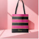 Chic Modern black pink Stripes Pattern with Name Tote Bag