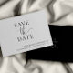 Announce your upcoming wedding with this minimalist save-the-date announcement card. This card features simple text and a black-and-white theme. Customize the text on the front and back of the card to share the details of your upcoming wedding. Visit my store to see other colour options to match your wedding colours. #minimalistwedding #savethedate #weddingplanning