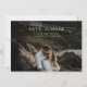 Set the tone for your special day with this chic modern coastal wedding photo save the date. The minimalist design effortlessly combines contemporary elegance with a touch of rustic charm, perfect for a romantic coastal celebration. The front of the card beautifully showcases your favourite couple’s photo, framed by sophisticated black and white tones that exude timeless romance. On the back, essential details are presented in a sleek and modern layout, ensuring your guests mark their calendars. Ideal for those seeking a stylish, yet simple way to announce their big day, this double-sided save the date card captures the essence of your love and the beauty of the ocean.