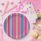 This modern design features colourful stripes in pink, blue and green. #modern #chic #stylish #elegant #girly #preppy #forher #party #partysupplies #partyplates #tableware #paperplates