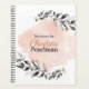Chic day planner done in white with a modern grey and peach floral garland, on top and bottom, with a pale peach watercolor paint splotch in the middle. Personalize the text to suit your home, school or business needs.