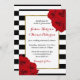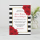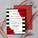 The chic modern luxe wedding collection features a classic black and white stripe background accentuated with beautiful ruby red roses and a faux gold foil frame. These rehearsal dinner invitations are easy to personalize with your own wording and matching wedding items can be found in the collection.