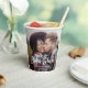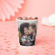 Add an elegant touch to bridal shower decorations with chic modern custom 2 photo paper cups. The picture and all wording on this template are simple to personalize for a couple's wedding shower, engagement party or other event. (IMAGE PLACEMENT TIP: An easy way to position a photo exactly how you want is to crop it before uploading to the Zazzle website.) The stylish minimal black and white design features bold brushed script calligraphy, classic vintage art deco typography and two pictures of the engaged couple. Congratulations to the bride!