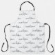 This black and white print apron is perfect for the trendy cook and features a personalized name pattern in black on a white background. Colours of text and straps are editable.