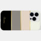 Cover your phone in a fashionable case featuring chic modern stripes in black, grey, blush pink and creamy eggshell white. Thin faux-gold lines separate the colours in designer style. Personalize with your name, monogram or other desired text. You can also delete the sample name shown if you prefer the case without any text.