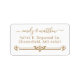 Chic modern gold on white wedding return address labels featuring your first names in a beautiful script font and address in a classic serif font above a lined scroll for an elegant, minimal feel. They will make addressing invitations or thank you notes a breeze.